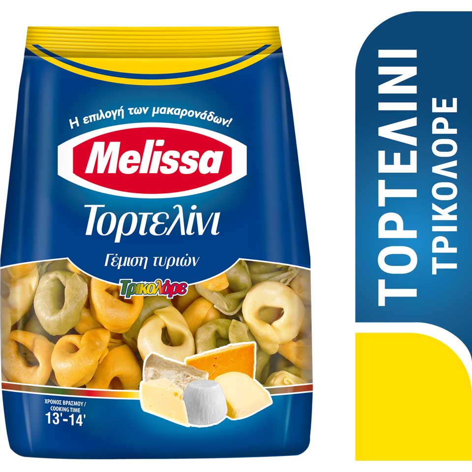 Τα γεμιστά ζυμαρικά, γνωστά ως τορτελίνι, εσωκλείουν μέσα στην ζύμη τους γέμιση ποικιλίας τυριών με γεμάτη γεύση για εύκολες, γρήγορες και γευστικές συνταγές. Τα τορτελινι τρικολόρε είναι τρίχρωμα, στην κλασική συνταγή του ζυμαρικού προστίθεται σπανάκι και ντομάτα που εμπλουτίζουν γευστικά το ζυμαρικό. Μια ιδιαίτερη πρόταση που συνδυάζεται με πολλές συνταγές και δίνει χρώμα στο πίάτο και στο τραπεζι σας.