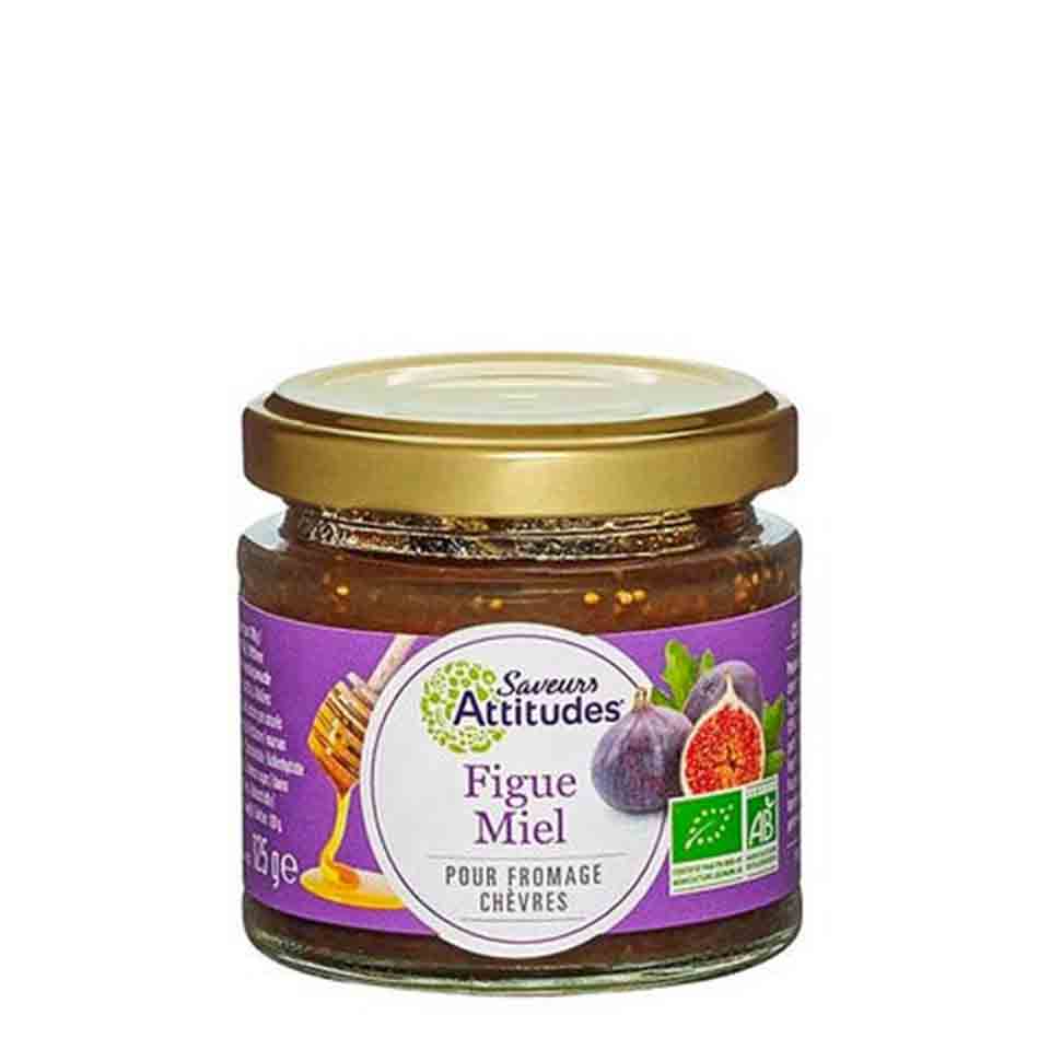 Βιολογική μαρμελάδα σύκου και μελιού της γαλλικής εταιρείας Saveurs Attitudes. Πρόκειται για ένα γκουρμέ προϊόν, σχεδιασμένο ειδικά για να συνοδεύει τυριά.