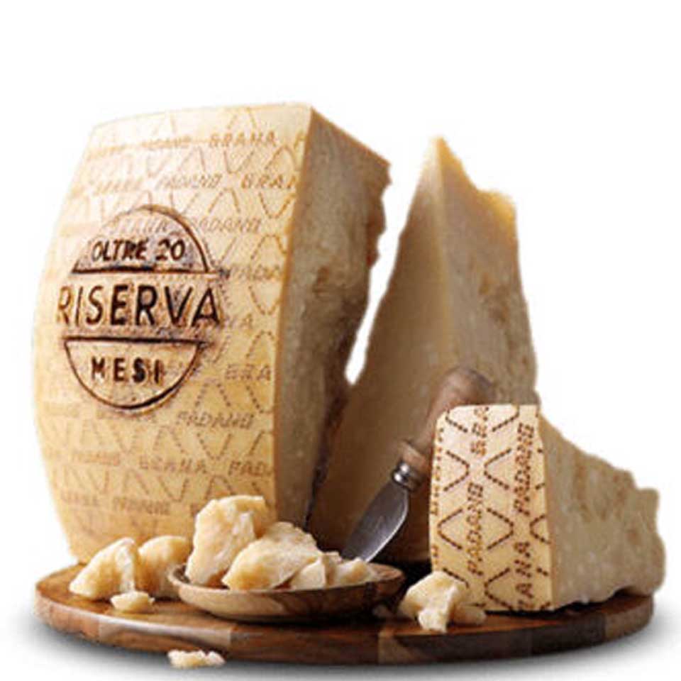Π.Ο.Π. τυρί, παρόμοιας τυροκόμησης με την παρμεζάνα και καταγωγή από την Κοιλάδα του Πάδου [Pianura Padana].Kοκκώδες σκληρό τυρί αγελάδας, λιγότερο εύθρυπτο από την παρμεζάνα και πιο απαλό στη γεύση. 18 μηνών ωρίμανσης.
