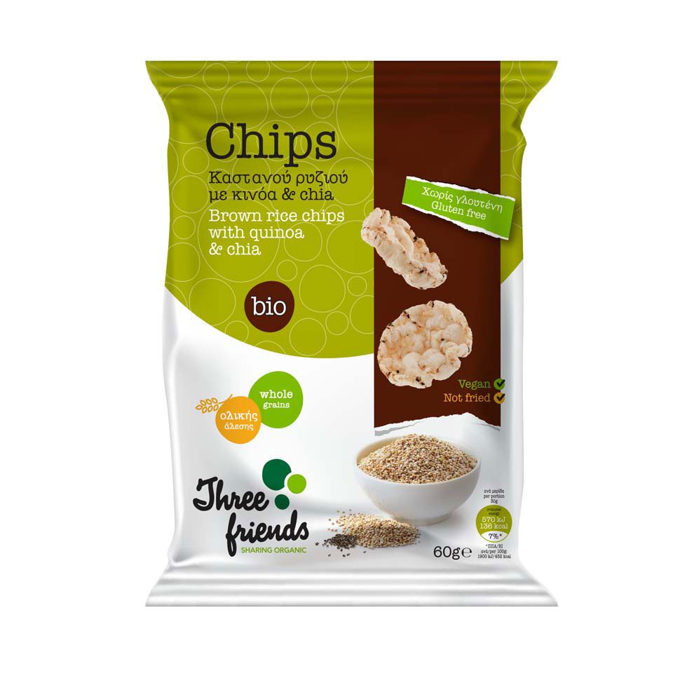 THREE FRIENDS CHIPS ΡΥΖΙΟΥ CHIA- ΚΙΝΟΑ 60GR