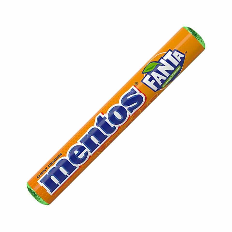Οι τσιχλοκαραμέλες Mentos Fanta περιέχουν τη μοναδική και νόστιμη γεύση του πορτοκαλιού Fanta σε ένα ζαχαρωτό Mentos.